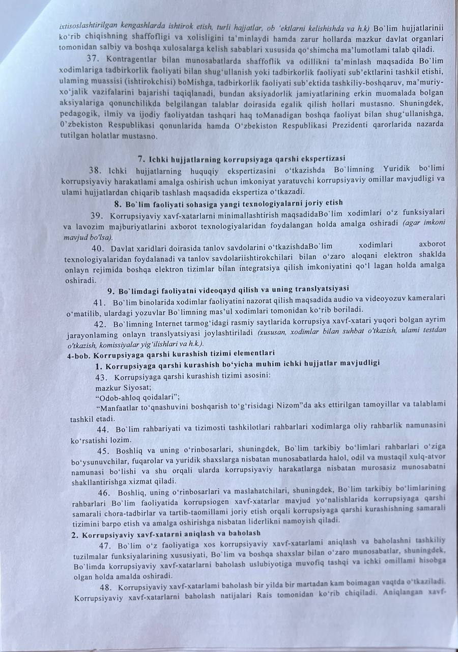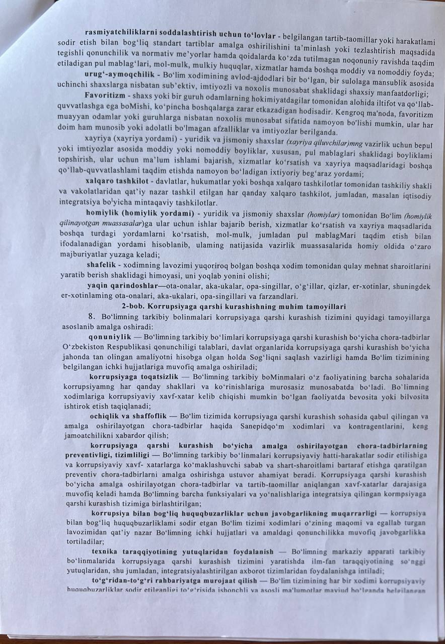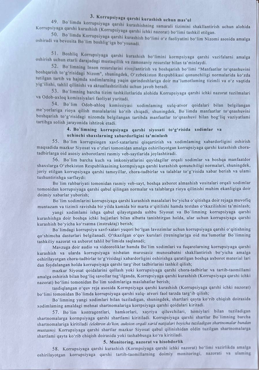 Yangibozor tuman SEO va JS bo'limining korrupsiyaga qarshi kurashish bo'yicha siyosati