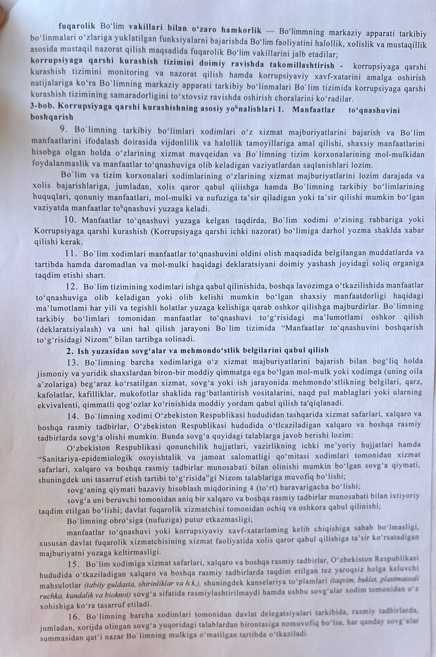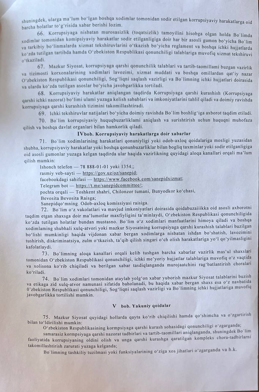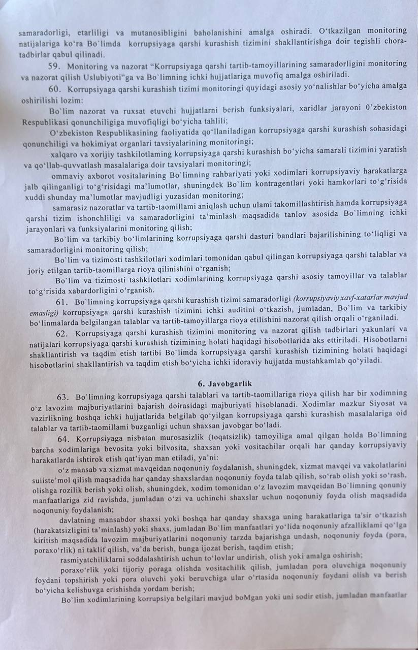 Yangibozor tuman SEO va JS bo'limining korrupsiyaga qarshi kurashish bo'yicha siyosati